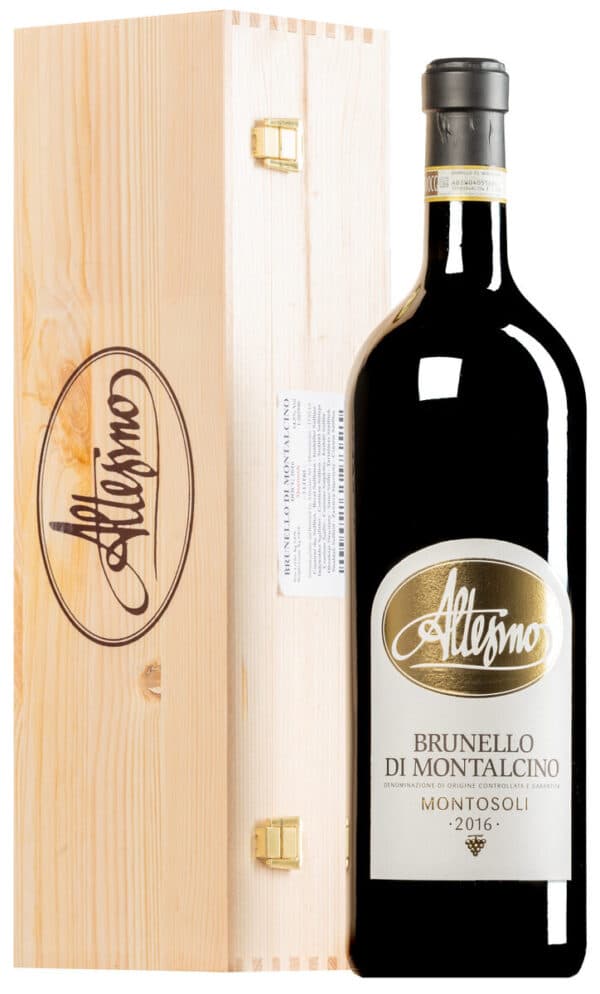 Deze historische cru van de beroemde ‘Montosoli’ wijngaard heeft een diepe granaatrode kleur en een complex boeket van rode en zwarte bessen, kersen, aarde, tabak en hooi. Volle smaak met stevige tannines, complex van structuur met een lange afdronk.